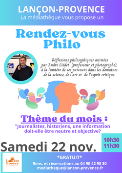 Les rendez-vous philo de la médiathèque, animés par Leslie Theis, formée à l'association SEVE (co-fondateur Frédéric Lenoir).