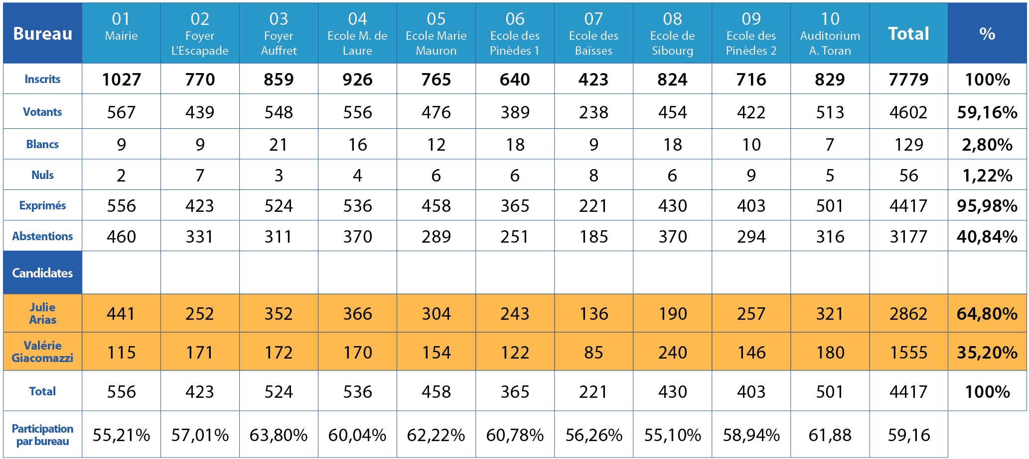 Le dimanche 15 mars, les dix bureaux de vote de Lançon ont enregistré 4602 votants sur 7779 inscrits, soit une participation de 59,16%
