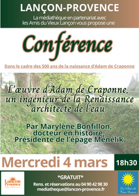 Conférence "L'œuvre de Craponne, un ingénieur de la Renaissance architecte de l'eau"