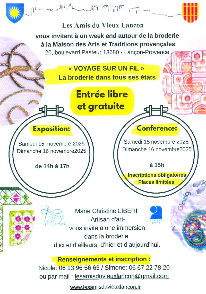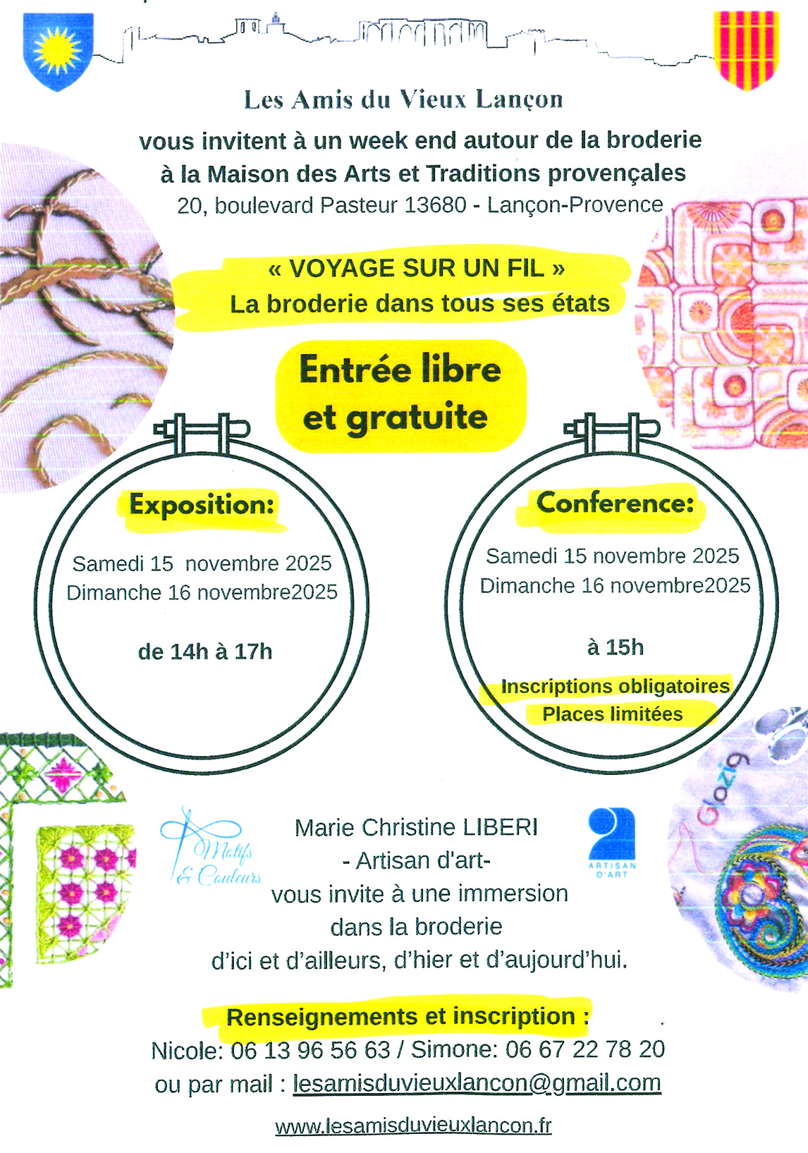 Les Amis du Vieux Lançon vous invitent à découvrir la broderie dans tous ses états à la Maison des Arts et Traditions provençales.