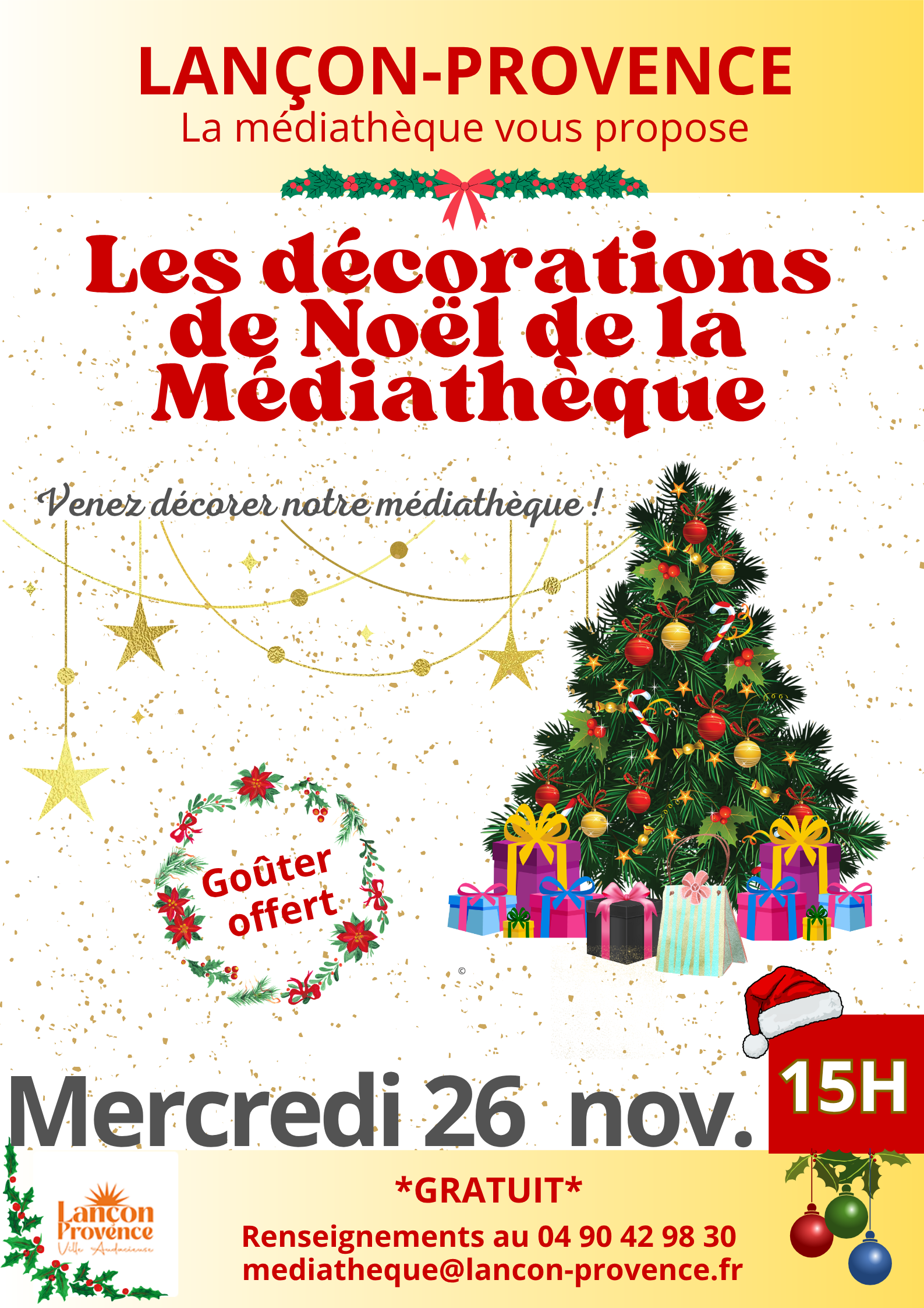 Nous mettrons toutes nos décorations à votre disposition et nous vous laisserons le champ libre pour décorer la médiathèque et son sapin. Enfants, parents, grands-parents, … tout le monde est bienvenu !